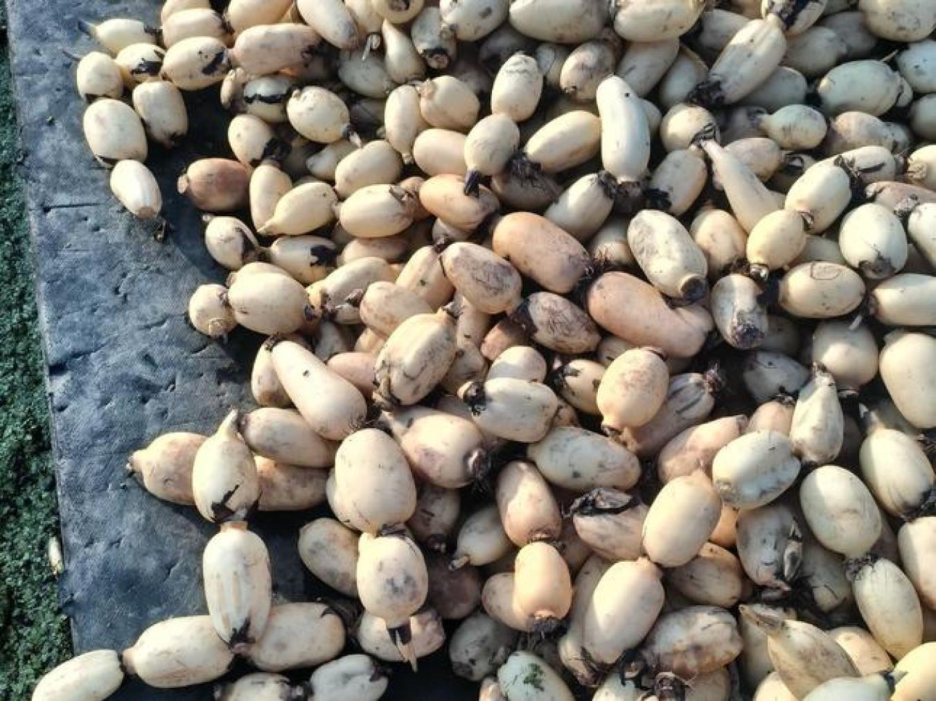 微型种藕,以其0.15至0.3公斤的小巧体型,不仅携带方便,而且繁殖系数高,省工省力,节约耕地,更重要的是,它们不带腐败病菌,为莲藕的健康生长提供了保障。每年,武汉市蔬菜科学研究所水生蔬菜研究室繁育的新品种微型种藕超过10万支,已在云南、四川、湖北、安徽等地广泛推广,深受藕农喜爱。
