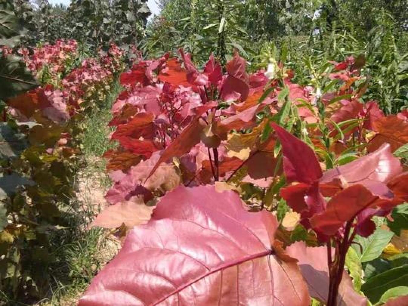 城市园林绿化业的迅猛发展,对性状优良的高大彩叶树种需求迫切。红叶杨以其速生、繁殖容易、适应性强的特点,满足了市场的需求,丰富了绿化植物的多样性。它不仅具有绿化、美化的功能,还能净化空气,提升环境质量,园林价值极高。