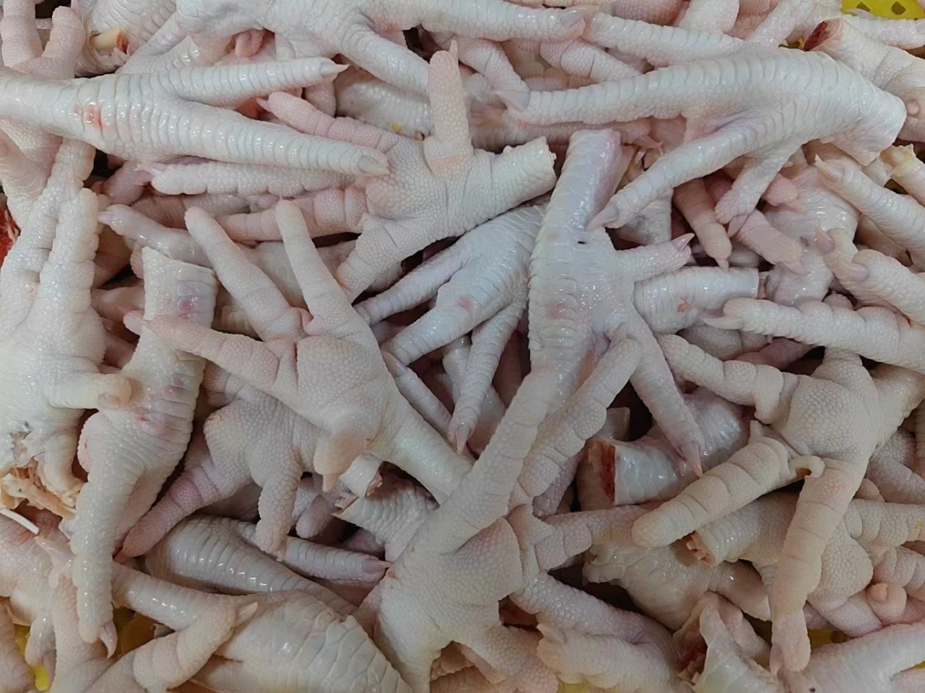 首先,泡椒凤爪的主要原材料是鸡爪,而鸡爪本身经过脱毛和清洗后本身就呈现出较为洁白的颜色。再通过焯水、漂洗等工序处理后,鸡爪变得更加干净透亮,为后续的腌制打下了良好的基础。