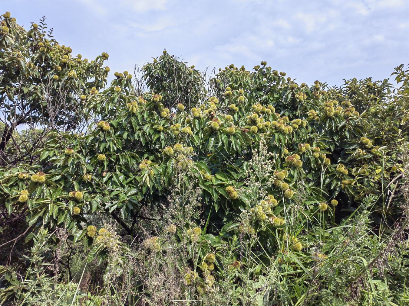 栗子树的果实被一层厚厚的刺球包裹着,这层刺球是为了保护里面的种子免受外界侵害。当果实成熟时,刺球会自然裂开,露出里面棕色的栗子。采摘栗子需要一定的技巧,因为刺球可能会扎手。不过,一旦剥开刺球,就能看到圆润光滑的栗子果实,让人感到惊喜。