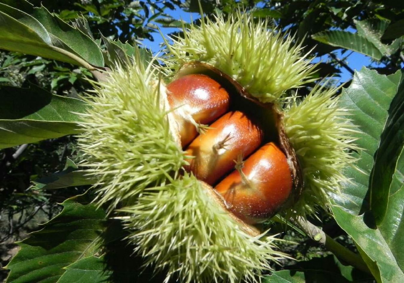 每年秋季,当板栗成熟时,它们会从坚硬的绿色刺球中脱落出来。这些刺球是栗子的外壳,具有保护作用。农民通常需要戴上厚厚的手套采摘这些果实,以免被尖锐的刺扎伤。栗子成熟后,外表呈现出光滑而有光泽的棕色,大小如同一颗乒乓球。