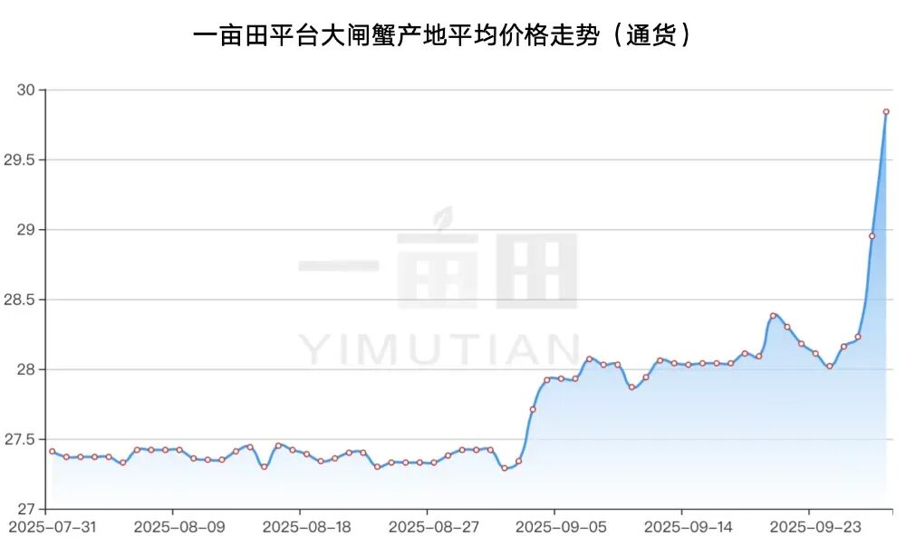 3两母蟹58元/斤,大闸蟹2天涨10元!一亩田大数据:国庆后回落