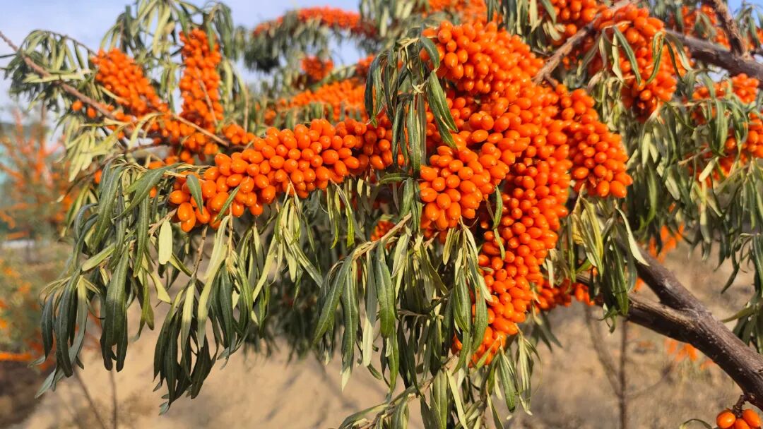 沙棘原产地是新疆的南疆和北疆地区,耐风沙、耐干旱,植株的适应能力很强,适合种植在较为干旱的地区。在我国东北、西北、西南等多个地区都有分布。自然环境下的沙棘产量不高,主要用作防风固沙、保持水土、改良土壤。种植环境下的沙棘,亩产量约3000—4000斤,按照每斤4元计算,亩产量可达12000元。