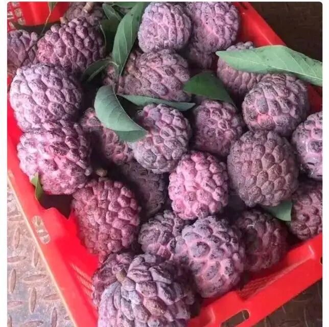 释迦果本身也有诸多品种,主要有绿皮、白皮和紫皮。绿皮的有大目释迦、绿宝释迦、凤梨释迦等,白皮的释迦果颜色偏黄,又被称为黄金释迦。紫皮的被称为玫瑰释迦,闻起来有淡淡的玫瑰香味,是一种极为稀缺的品种。目前,玫瑰释迦在海南三亚已经种植成功,亩产预计200斤以上,目前收购价每斤13元。