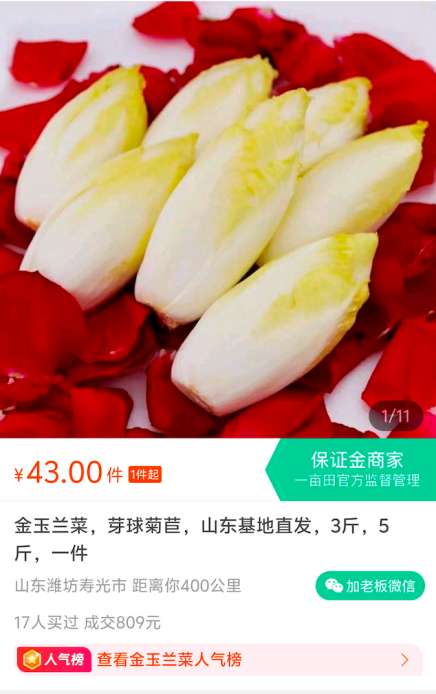 金玉兰菜外观长得有些像白菜,但不是同一科属,外观更漂亮、口感好,在一亩田平台,有少量产地商家在售,产地批发价一斤在14-16元。金玉兰菜种植占地空间小、产量大、生长周期短、无需阳光,栽培便捷,具有适应性强、耐寒耐热等特点,一亩产量大约在2000斤-2600斤左右,亩产值最高可达4万元。