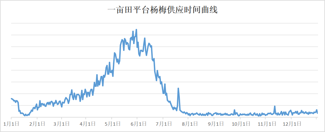 除了前文提到的云南特早熟杨梅和广西早熟杨梅之外,福建、浙江、湖南等多个产地的杨梅在5月份陆续成熟。在一亩田平台4月中旬至7月,杨梅供应热度明显高于其他时候。也就是说,此时供应量增加,也意味着价格更实惠,实现“杨梅自由”,就在此时。