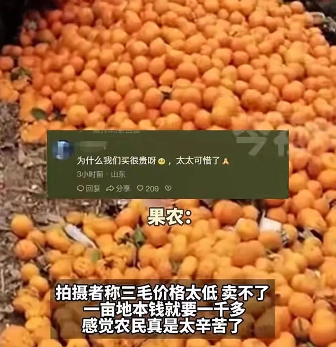 根据拍摄者称:由于天气冷的原因,现在都没有人买沃柑了,就算有人要买,给的价格也是很低的。比如往年都是一两块一斤的,到了今年连一块卖都不到了,前天还能卖八毛,过了一天就只能卖三毛了。