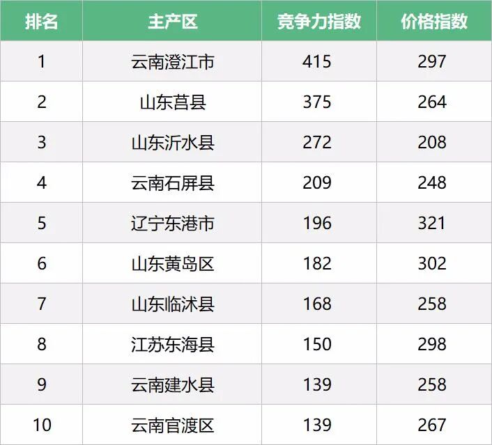 价格指数是根据产地价格进行综合计算得出的,反映出不同产地的平均价格水平,价格指数越高,代表当地的价格相对越高,反之亦然。