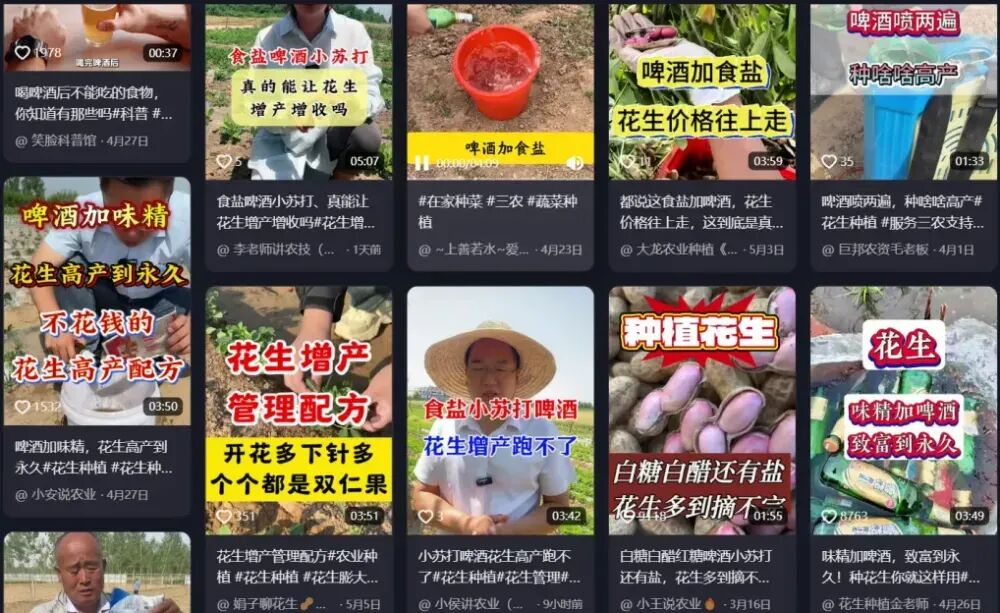 “啤酒加红糖,简简单单就能增产增收40%。”“这么便宜有效的农药,农资店绝不会告诉你。”……