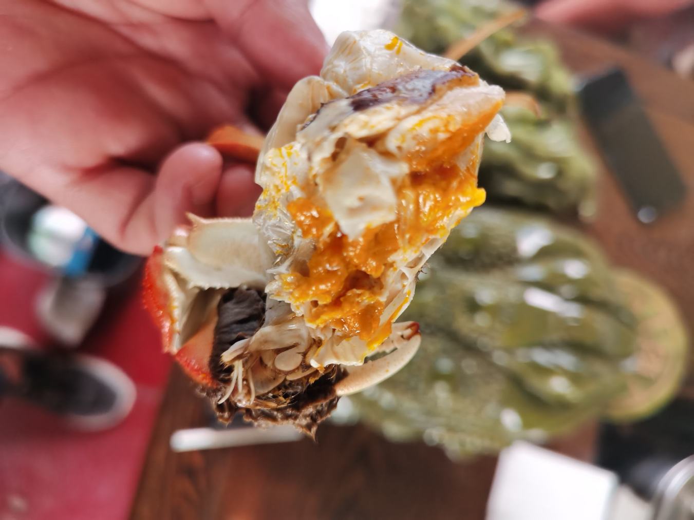 大闸蟹的“黄”指的是雌蟹体内的卵巢和消化腺,通常在成熟后呈现橘红色或金黄色,富含蛋白质、脂肪以及多种微量元素。蟹黄不仅味道鲜美,还具有很高的营养密度,是大闸蟹中最具风味和价值的部分之一。