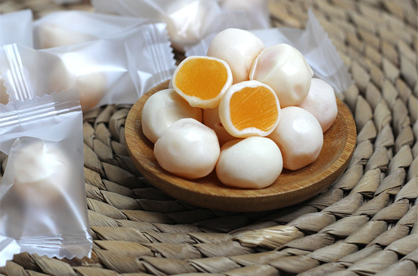 当糖浆接近所需温度时,加入柠檬酸和少量甜橙果肉继续搅拌均匀。注意此时火候要控制得当,避免糖浆焦化。待糖浆完全熬好后迅速倒入模具中,冷却定型约1小时。脱模后可根据喜好切成小块或包裹糖纸。