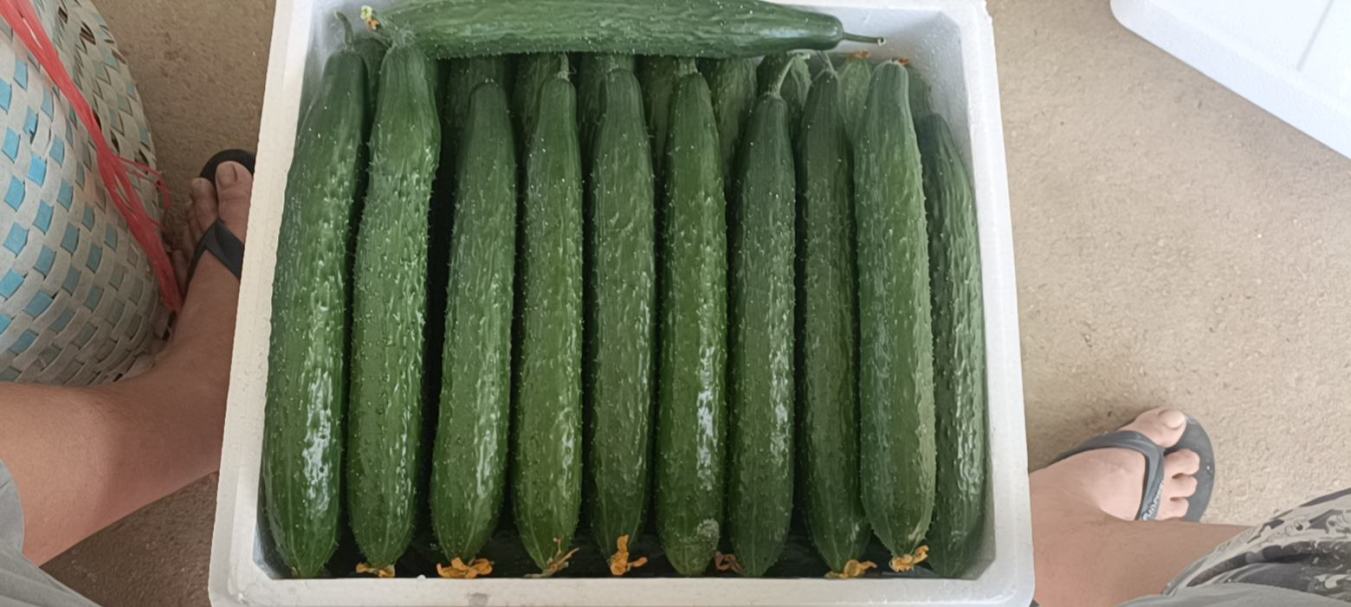 精品旱黄瓜,表皮颜色翠绿,口感清脆爽口,带有淡淡的甜味。