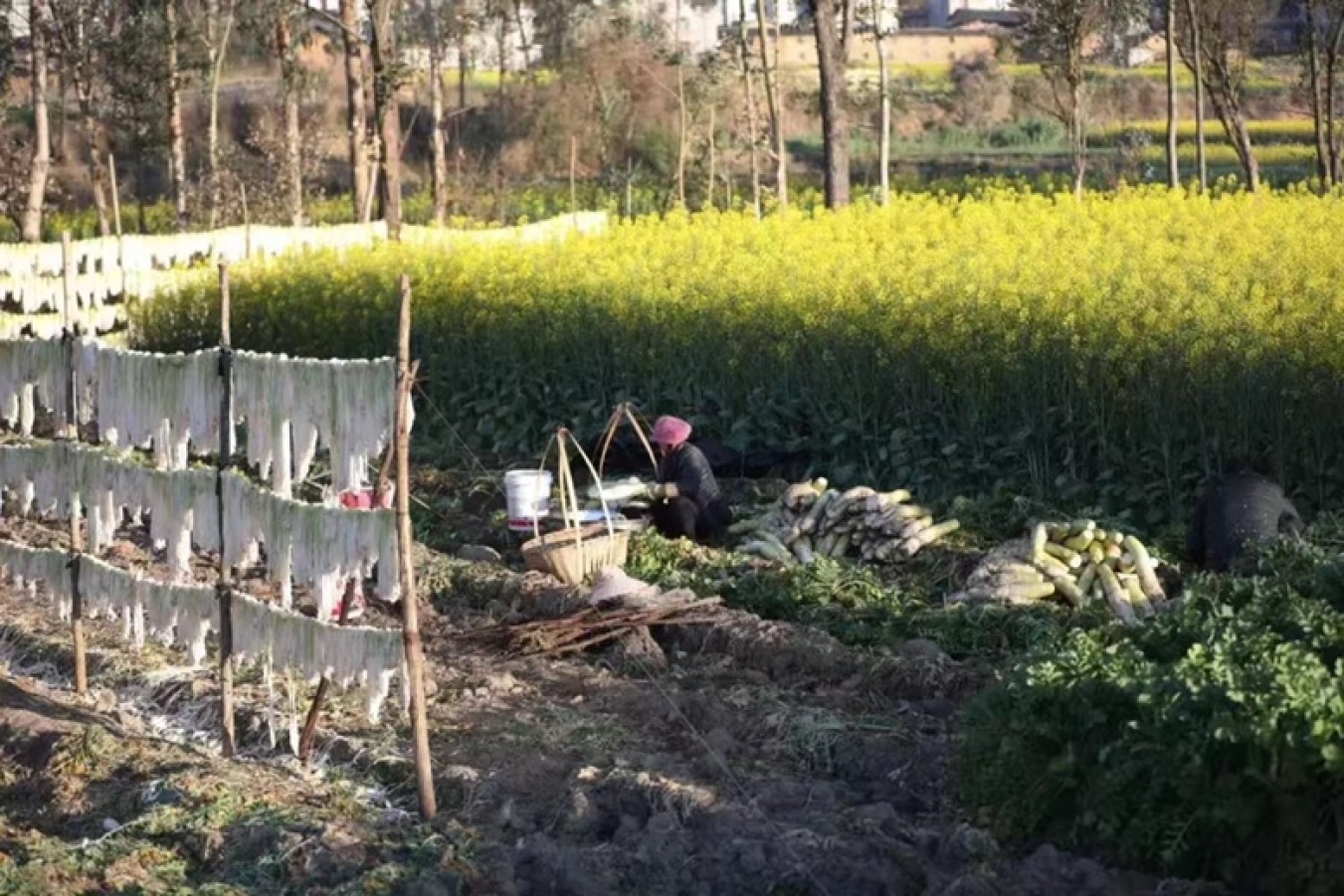 将切好的萝卜条晾晒至略微脱水变软,这样更有利于吸收黄泥中的天然菌种进行发酵。同时准备干净无污染的黄泥,最好是山间红壤或田边湿润黄土,去除杂质后加少许盐拌匀。