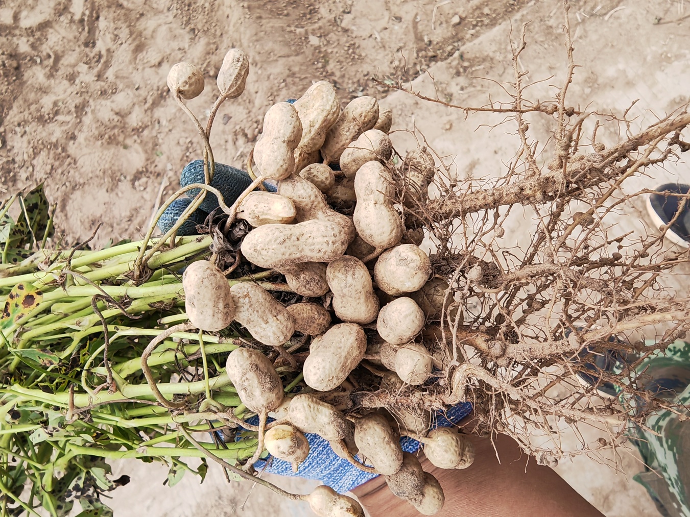 花生是地上开花、地下结果的作物,荚果成熟度不一致,因此从外部难以判断是否饱满成熟。通常,根据生育期、温度和植株状态三个因素来确定适宜的收获期。