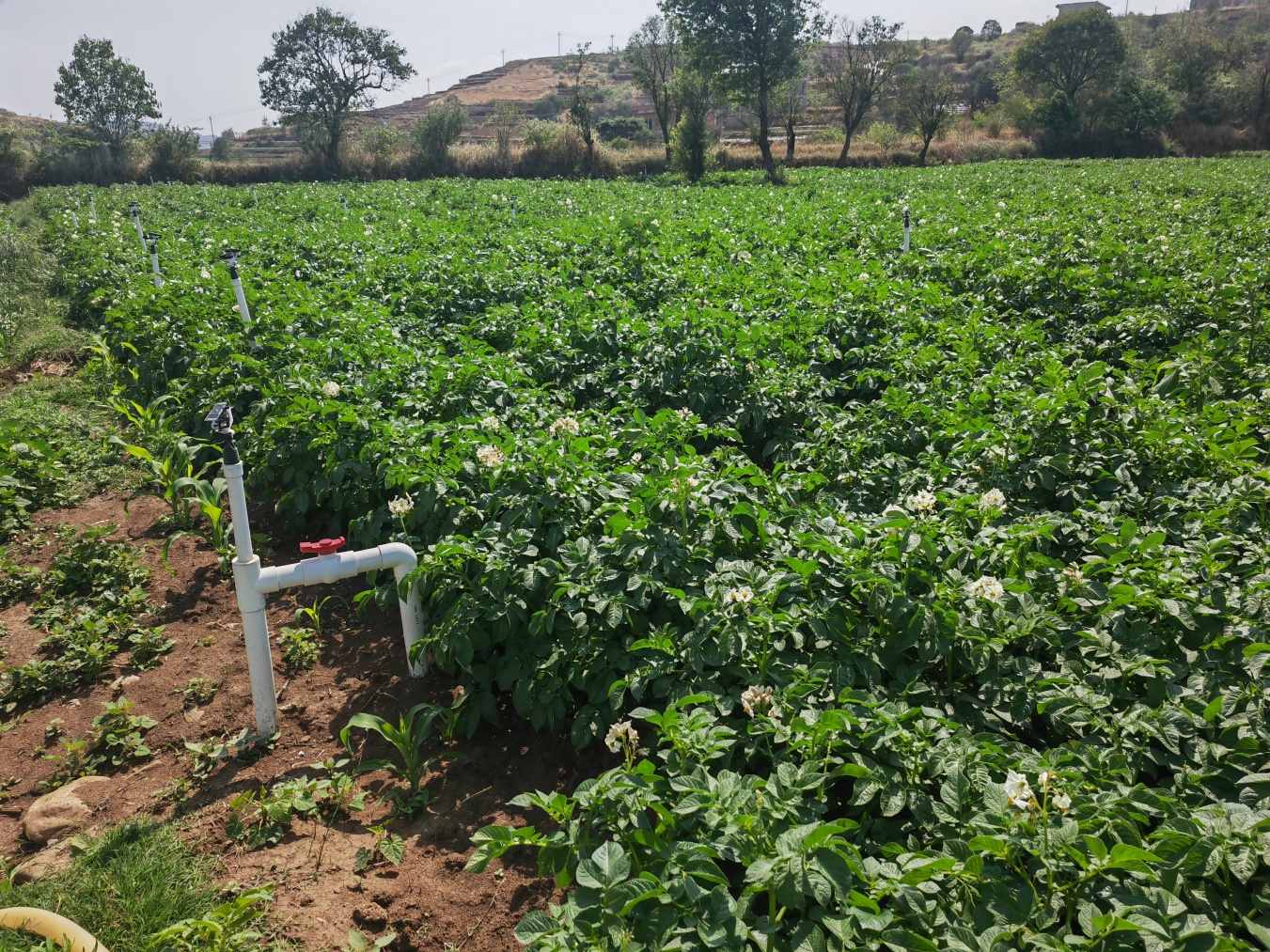 管理方面,需要特别注意水肥控制。土豆喜湿润但不耐涝,土壤需保持适度松软,以促进块茎膨大;而番茄则需要充足的水分供应来保证果实发育。施肥时,前期以氮肥为主促进植株生长,后期增加钾肥比例,帮助提高土豆块茎质量和番茄果实甜度。此外,还需定期检查病虫害情况,及时采取防治措施。