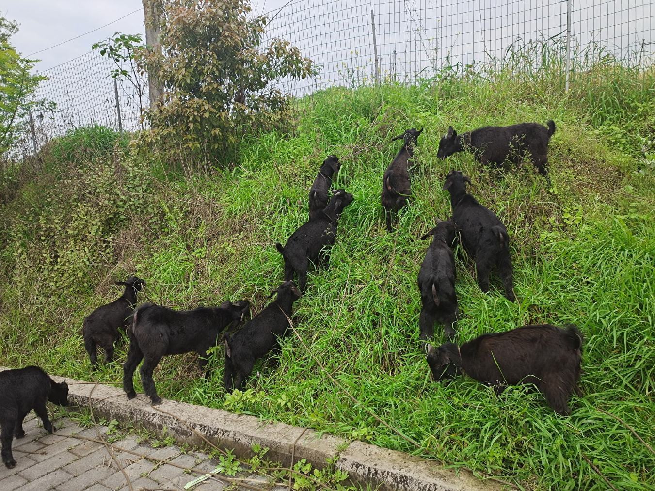 放养小耳朵黑山羊。