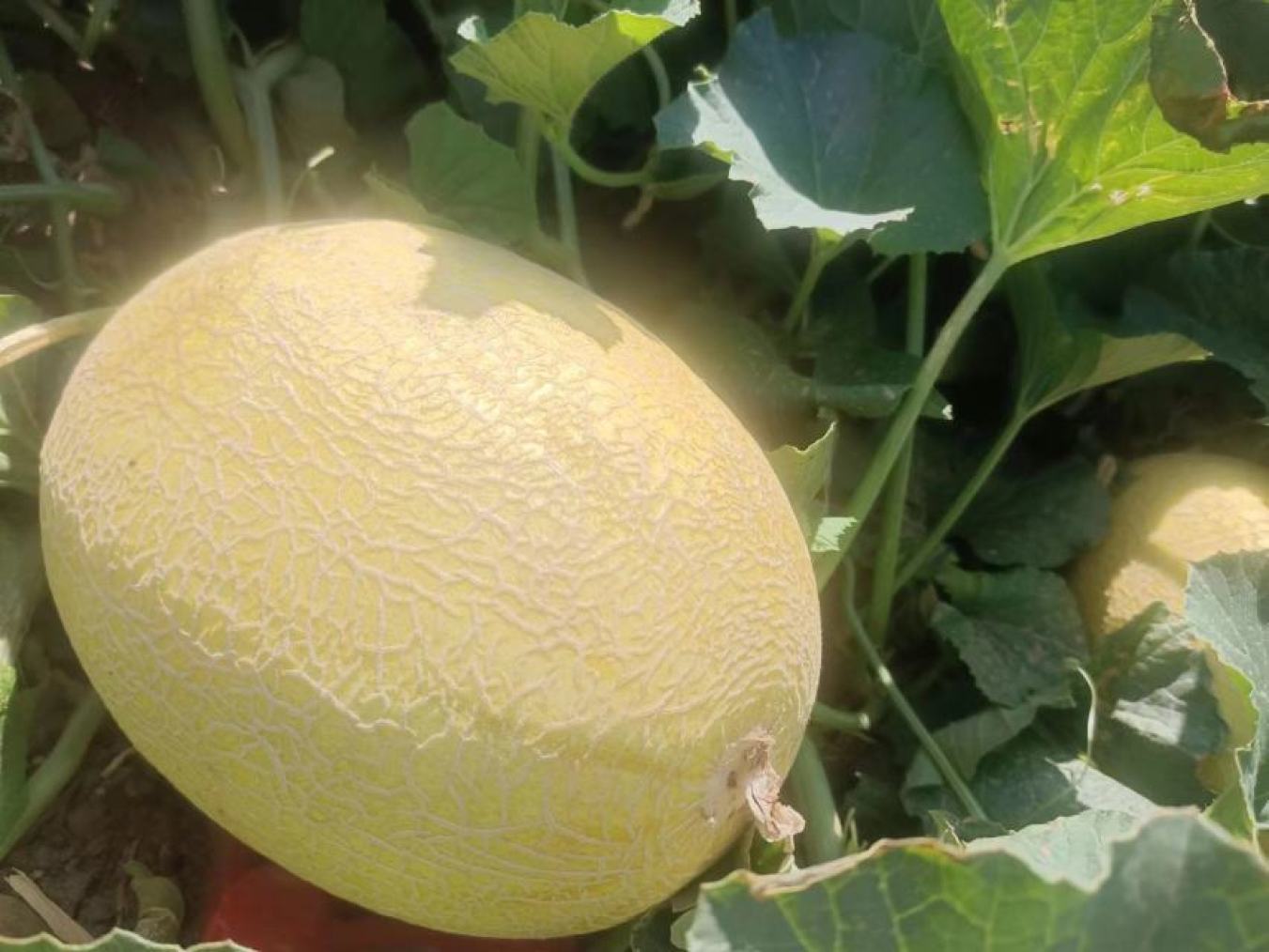 这种甜瓜是中国农科院蔬菜花卉研究所与新疆农科院园艺所共同选育的,具有植株生长健壮、抗性良好的特性,是农产品中的明星品种。