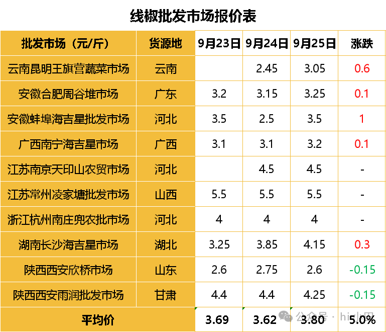 线椒3.8元,涨5%;