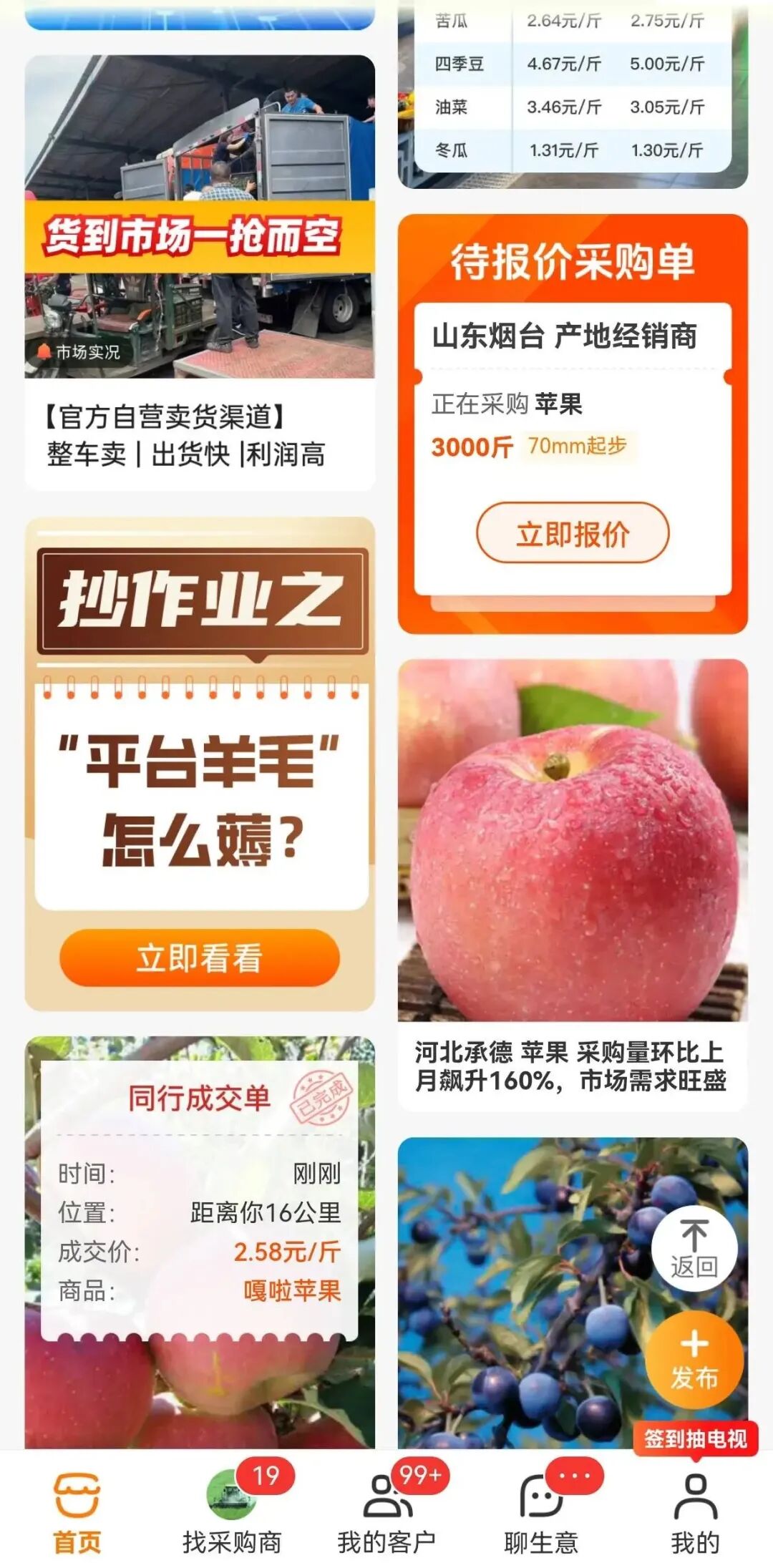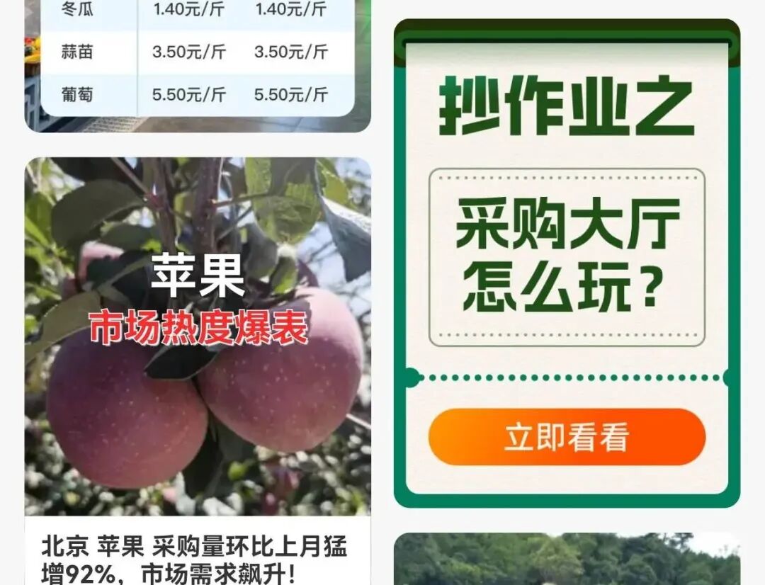 随着市场的快速发展,商家面临的竞争日益激烈。采购商的需求和购买行为也在不断变化,市场信息传递更加迅速,这要求商家能够快速适应市场环境,及时调整销售策略。在此基础上,一亩田对卖家版首页内容进行了全面改版。