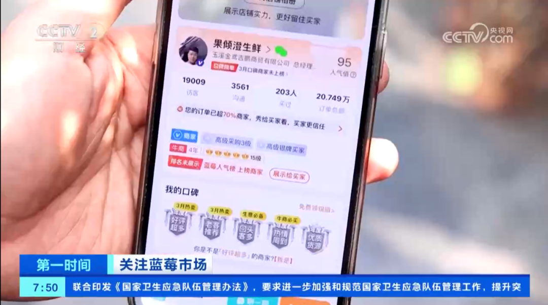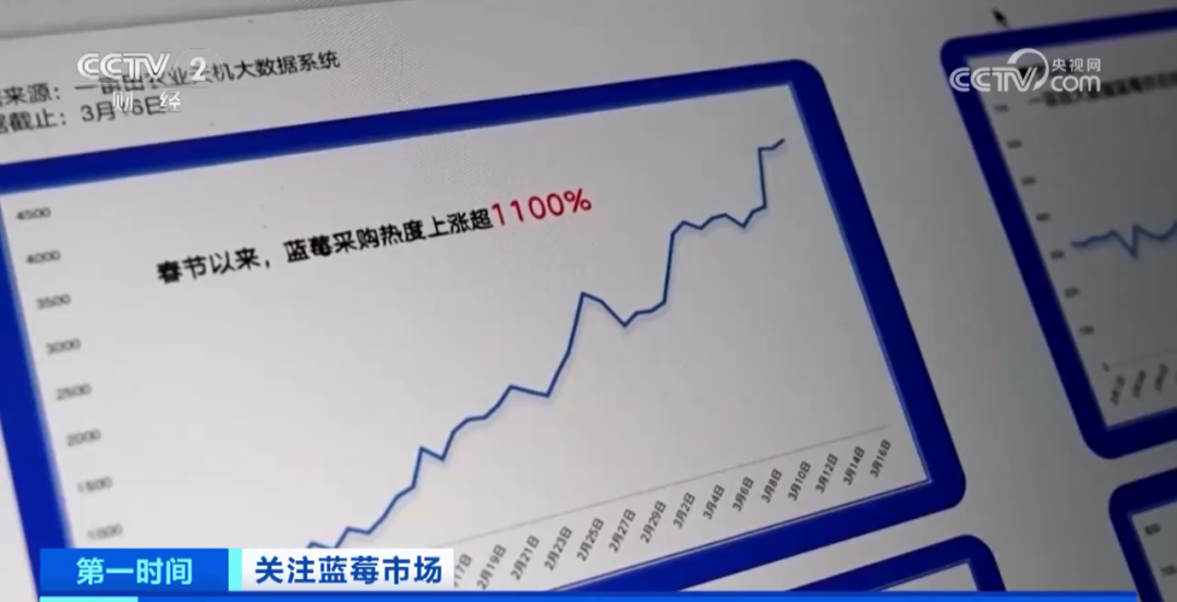 央视关注:春节以来,一亩田平台蓝莓品类产销两旺,采购热度上涨11倍