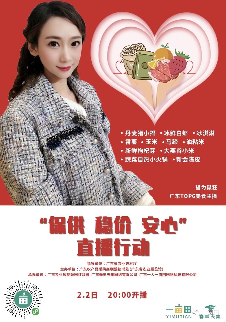 直播嘉宾简介:猫为鼠狂,淘宝人气主播,淘宝粉丝32万。在11.1南果北上,北果南下活动中,以网红直播、县长代言推介销售农产品,短短一分钟卖出1036件遂溪火龙果,最终1小时销售火龙果1.7万件,共6.8万斤。