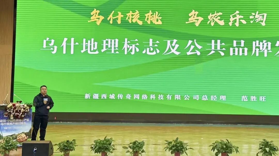 新疆西域传奇网络科技有限公司总经理范胜旺介绍了农产品地理标志“乌什核桃”、县域公共品牌“乌农乐淘”的品牌理念,就品牌发展规划、电商赋能产业等情况进行了讲解。