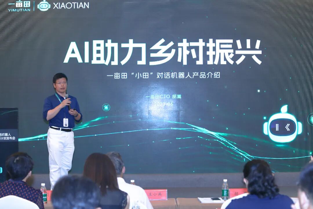 6月26日,一亩田集团“小田”对话机器人暨农业AI生态伙伴计划发布会在北京如期举行。一亩田CTO胡嵩现场做“用AI助力乡村振兴”的主题演讲,并正式对外发布国内首款基于大模型技术的农业AI对话机器人——“小田”。