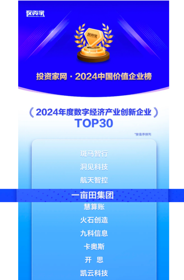 数字科技服务乡村发展,2024年,一亩田荣登“投资家网·2024中国价值企业榜”数字经济产业创新企业榜,以及2024电子商务大会示范案例。