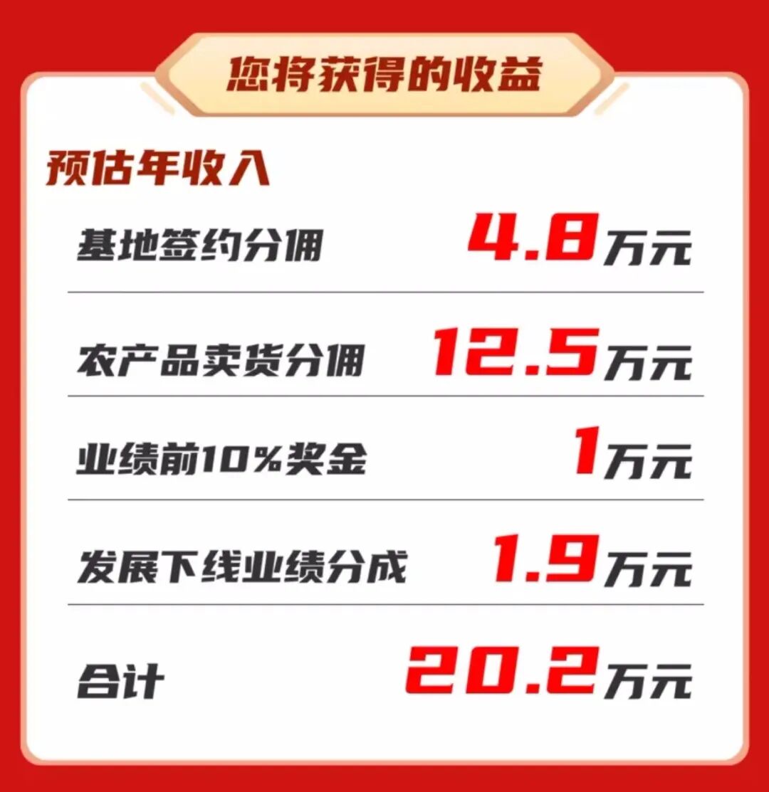 4.业绩分成。如果你觉得这是一个好像的乡村创业项目,能够邀请更多朋友加入致富,项目也会给予一定的业绩奖励。