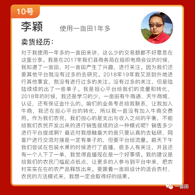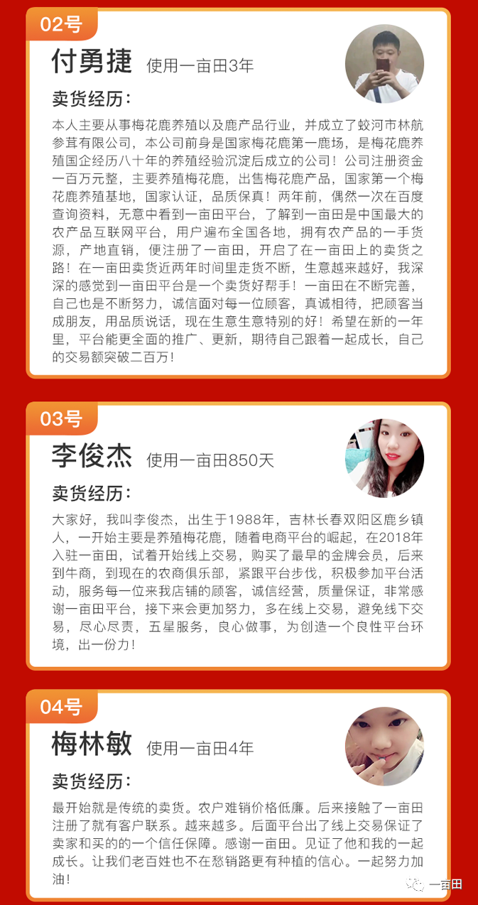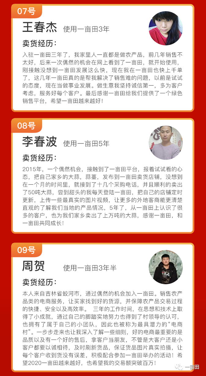 1世界上最重、最大的水果之菠萝蜜,一年四季都可吃到!主产区在哪里?谁是最强产区?194浏览2新春遇佳节,来恒山黄芪线上交易会选原产地正北芪!172浏览3四川省金堂县委书记辜学斌率队来访,与一亩田探讨特色产业6大合作方向159浏览4重拳出击,抵制诈骗!一亩田平台封禁一批违规账号,维护诚信经营环境127浏览5从月薪几千到年入百万,河北下岗小哥靠卖干果,打了一场漂亮的翻身仗!113浏览6让农产品搭上电商快车!一亩田“灯塔计划”新农人公益培训助力区域乡村振兴案例登上人民日报!92浏览7餐馆打工还是做农产品代办?甘肃武威小伙5年从0起步到月销1000万斤,说感谢一亩田91浏览8番茄价格大跳水产地0.3元一斤,农户拿去喂鸡,如此烂市到底还能不能种?87浏览9山东蔬菜第一县,居然不是寿光?一亩田单品之乡评选,县域单品之乡,欢迎投票!87浏览10从零做起建立加工厂,如今年销售额300万!河北小伙分享不一样的致富经历79浏览