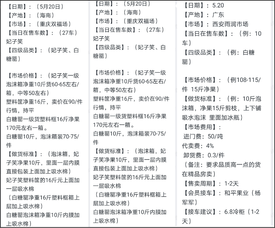 每天,项目团队都会通过一亩田豆牛代卖网络,了解全国54个批发市场的荔枝销售数据,包括荔枝在售车次、销售价格、包装要求及销售趋势等,都会第一时间完成信息汇总。团队根据全国批发市场数据,调整产地采购、包装等标准,并持续监控各个批发市场价格变化情况,通过豆牛智能调度派单系统,即使车在途中也可以随时调整出货市场,也避免任何潜在的损失。