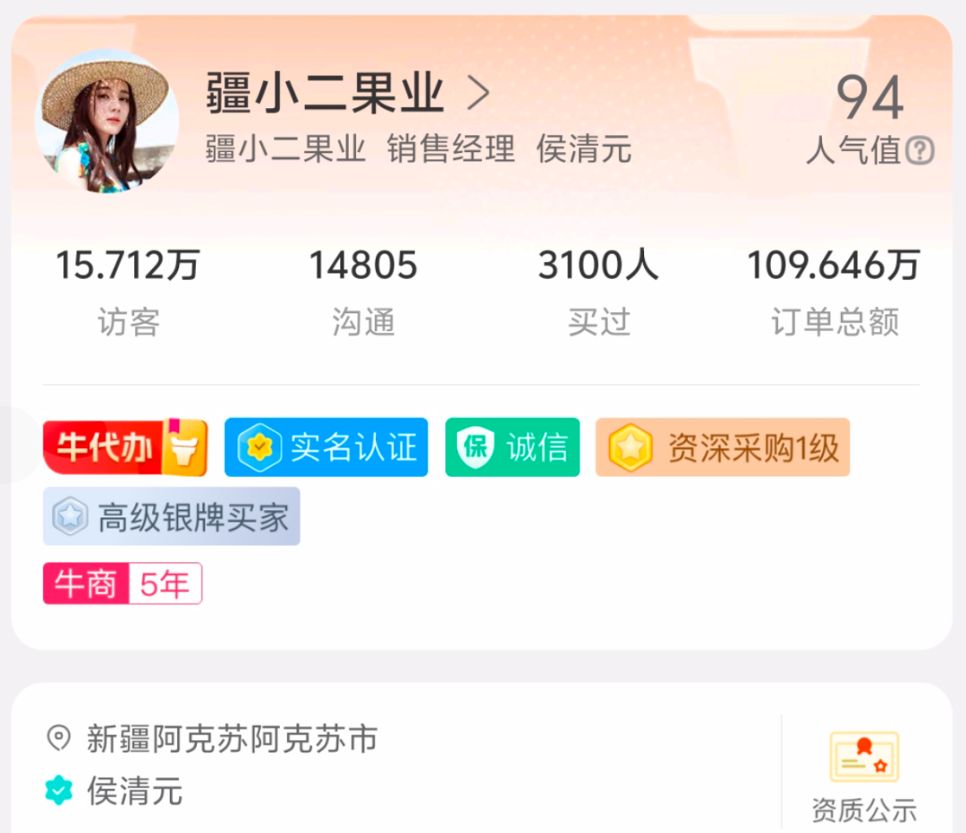 1单卖出苹果10万斤!新疆90后小伙一亩田上卖水果,店铺访客超150000
