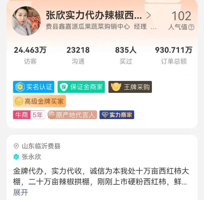 渠道扩大了,客户更多了。有了一亩田线上店铺之后,张永欣可以通过网络接到来自天南地北客商的采购电话,生意变得更好了。如今,张永欣的一亩田店铺访客已经超过24万了,沟通过的客户也有2万多了。